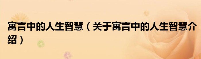 关于寓言中的人生智慧到此分享完毕,希望能帮助到您。