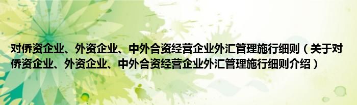 关于对侨资企业、外资企业、中外合资经营企业外汇管理施行细则到此分享完毕,希望能帮助到您。