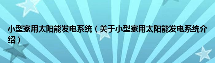 导读 大家好,小万来为大家解答以上的问题。小型家用太阳能发电系统,关于小型家用太阳能发电系统介绍这个很多人还不知道,现在让我们一起来看看吧...