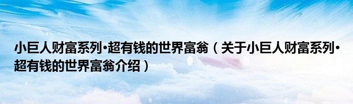 关于小巨人财富系列·超有钱的世界富翁到此分享完毕,希望能帮助到您。